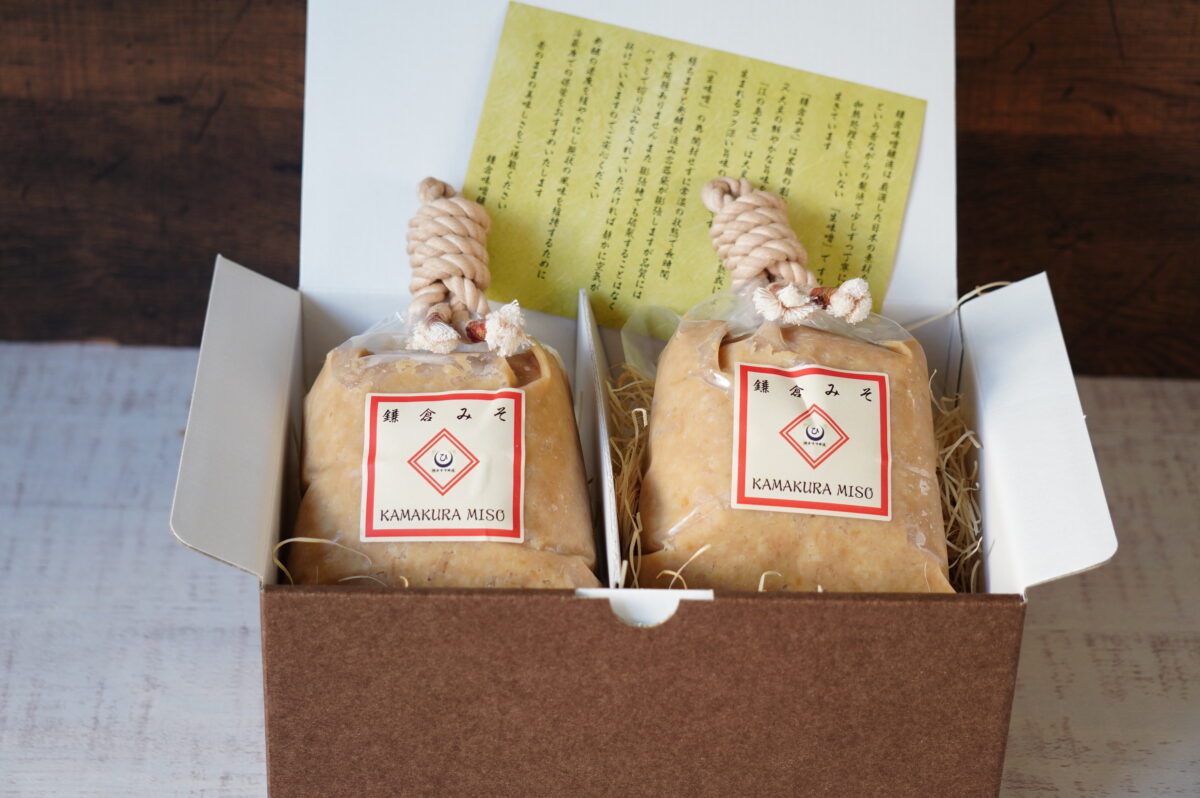 素材は国産の米、大豆、塩のみ。まろやかな風味の「鎌倉みそ」、更に熟成を進めた「江の島みそ」の2種よりお選びいただけます。