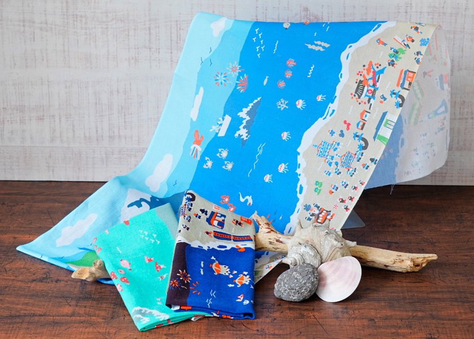 湘南の日常が散りばめられた、海辺のテキスタイルの手ぬぐい -minigara-